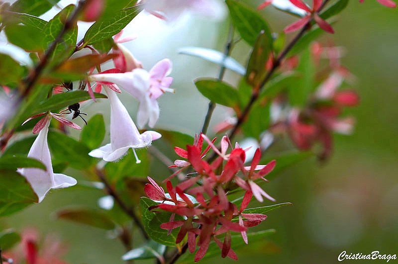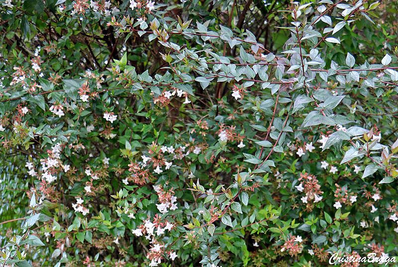 Abélia – Abelia x grandiflora é um arbusto, pertence à família Caprifoliaceae, perene, semilenhosa, delicado, de 2-3 metros de altura e muito ornamental.