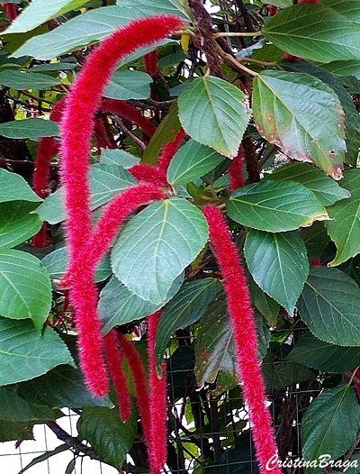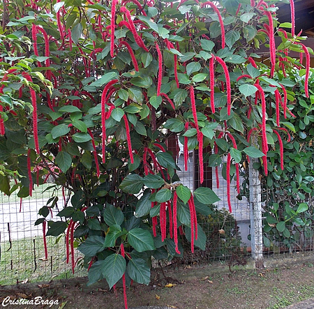 Acalifa macarrão é um arbusto, pertence à família Euphorbiaceae, nativa da Ásia e Índia, perene, semi-herbácea, ramificada, de 1,5-2,0 m de altura e de florescimento vistoso.