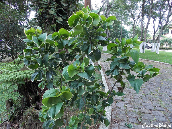 Acalifa Verde – Acalypha wilkesiana é um arbusto, pertence à família Euphorbiaceae, nativa das Ilhas do Pacífico, perene, semilenhoso, de 1,5-3,0 metros de altura, tem aspecto arredondado e folhagem vistosa.