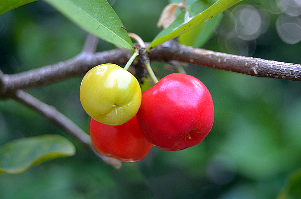 A acerola é rica em vit C, Vit A, em ferro e cálcio.