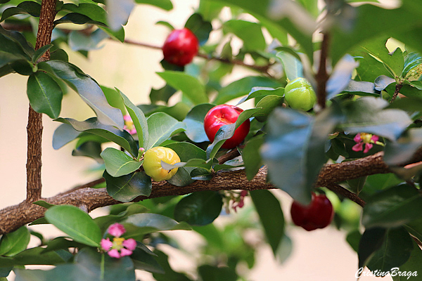 Acerola – Malpighia emarginata é um arbusto, pertence à família malpighiaceae, nativa América Central, América do Sul e das ilhas do Caribe, perene e de até 3 metros de altura.