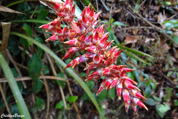 O gênero Aechmea possui folhas em forma de roseta, que formam um “copo” no centro da planta, que retém água e detritos para nutrição.