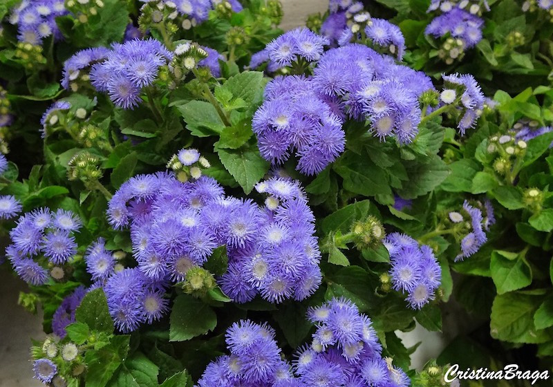 O Agerato – Ageratum houstonianum é uma herbácea, pertence à família Asteraceae, nativa da América Central, América do Norte e México, anual, ereta, de 20-30 cm de altura e florescimento vistoso.