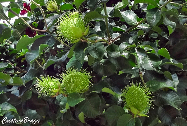 Fruto são cápsulas ovóides, espinhosas, com diversas sementes.
