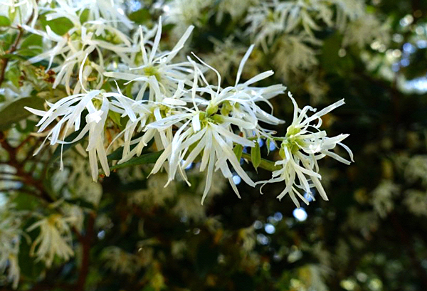 O loropetalum chinense na espécie típica, possui flores brancas e pétalas estreitas, com folhagem verde escura e de 3-12 metros de altura.