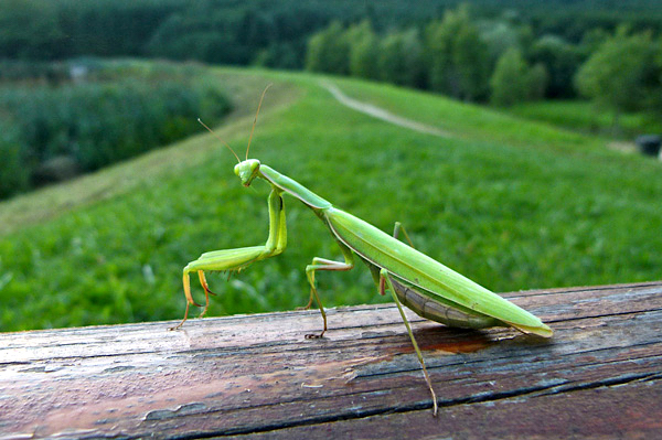 Louva-a-deus podem mover a cabeça 180º, para observar também acima de suas costas, pelo que se sabe é o único inseto que enxerga em 3D, quando está em perigo, finge-se de morto.