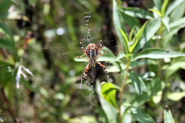 Aranha de jardim – é um aracnídeo, possui o corpo dividido em dois segmentos, com oito pernas articuladas, olhos simples e exoesqueleto.