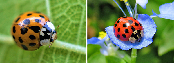 Ela se parece muito com a boa joaninha, mas a principal diferença é que elas têm um “M” ou “W” logo atrás da cabeça em uma área que é de uma cor esbranquiçada e elas podem vir em uma variedade de cores.