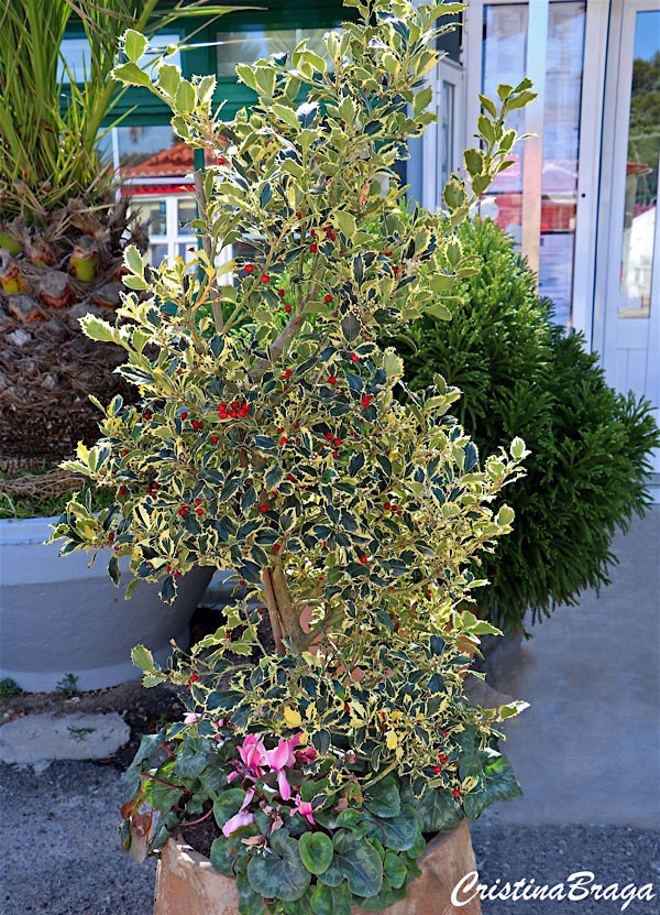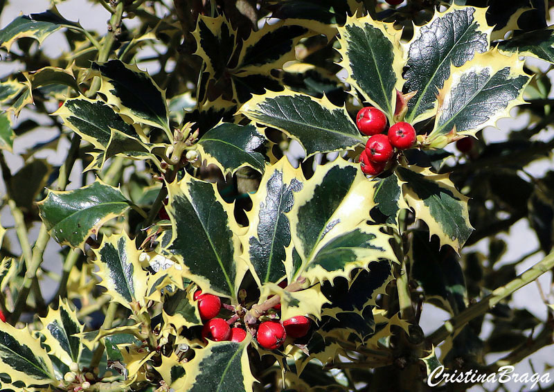 O Azevinho – Ilex aquifolium é um arbusto, pertence à família Aquifoliacea, nativo da Europa e Ásia ocidental, perene, de até 20 metros de altura, mas geralmente e encontrado em alturas muito menores, de 2-3 metros.