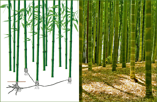 – Os Colmos de bambu alastrantes, emergem do solo em seu diâmetro total e crescem até sua altura final em uma única estação de crescimento.