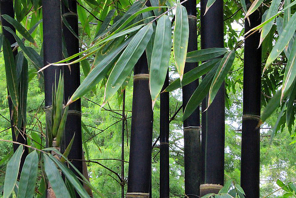 O bambu preto envia seus novos brotos verdes e dentro de 6-9 meses eles passam para preto. A madeira permanece preta mesmo depois de colhida, tornando-a popular para móveis, instrumentos musicais e outros trabalhos artesanais.