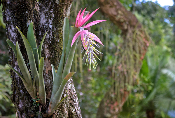 Epífitas, são espécimes com sistemas radiculares muito rasos que servem ao propósito de ancorar a planta a uma árvore ou outra superfície porosa. Elas colhem alimento do ar e da água da chuva, que se acumula em uma cavidade central nas folhas das plantas.