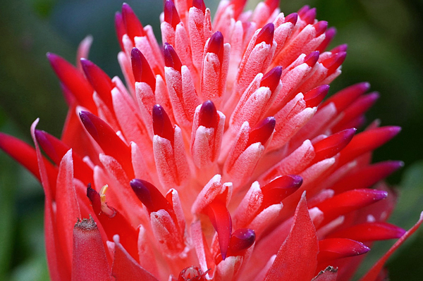 Inflorescência em espiga ou espiga dupla, com brácteas do escapo elípticas, oblongas, lineares, triangulares ou lanceoladas, com ápice geralmente agudo, podem ser rosa-choque ou vermelhas, com flores pequenas e tubulares.