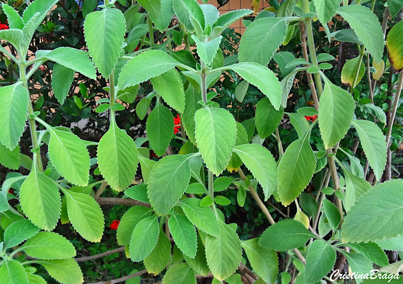 O Boldo de jardim – Plectranthus barbatus é um arbusto, pertence à família Lamiaceae, nativo da África tropical e Índia, perene, de crescimento rápido, possui hábito arredondado, de 1-2 metros de altura.