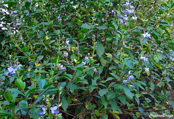 A Borboleta azul – Rotheca myricoides é um arbusto, pertence à família Lamiaceae, nativa da África tropical, perene, com ramagem esparsa e recurvada, de 1,5-3 m de altura e muito ornamental.