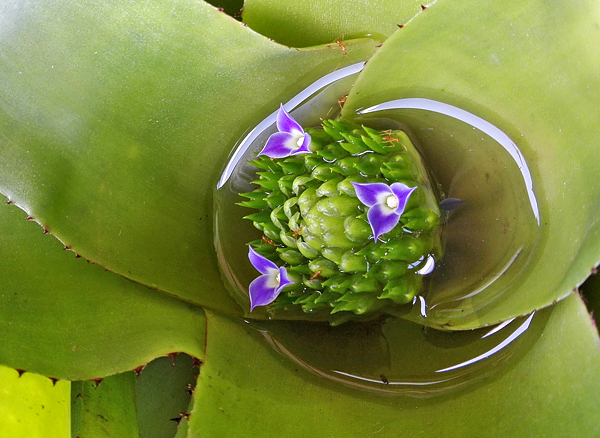 Bromélias desenvolveram mecanismos extraordinários, para aproveitar ao máximo as potencialidades do ambiente em que vivem. Assim, na lenta caminhada evolutiva através dos milênios, acabaram surgindo as rosetas foliares com tanques centrais, que não apenas retém a água das chuvas, mas armazenam matéria orgânica proveniente de folhas, flores, sementes e até mesmo de animais mortos, disponibilizando nesta água os nutrientes necessários à sua sobrevivência.