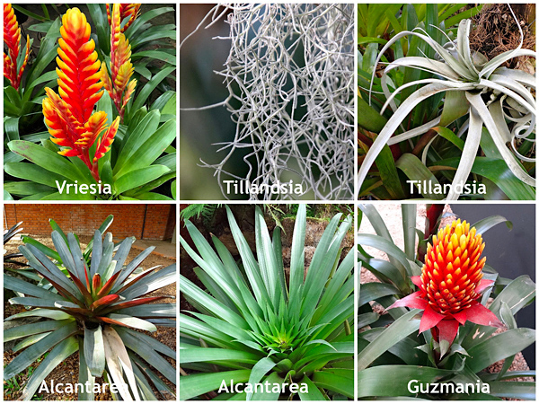 Tillandsioideae – A maioria das bromélias dessa espécie são epífitas, com exceção de algumas poucas gigantes que crescem sobre rochas. As de folhas branco-acinzentada ou prateada, de algumas tillandsias, possuem escamas peltadas, pelos modificados, que conferem as folhas grande permeabilidade, além de torná-las mais espessas e capazes de refletir a luz do sol, amenizando o calor. Pertencem a essa família, Alcantarea, Catopsis, Guzmania, Tillandsia, Vriesia.