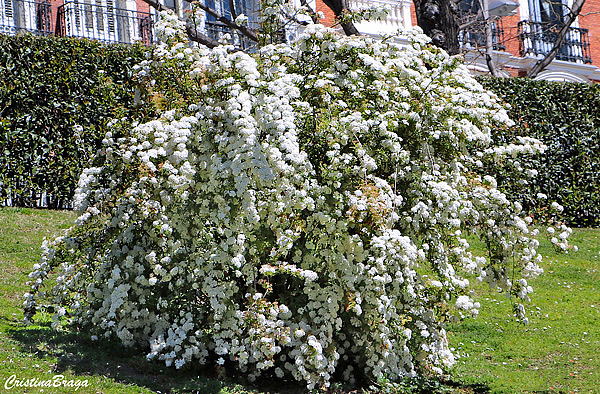 O Buquê de noiva é um arbusto escandente, pertence à família Rosaceae, nativo da China e Japão, perene, ereto, de 1,2-1,5 metro de altura, com folhagem e florescimento ornamentais.