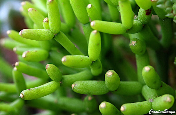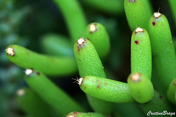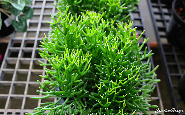 Hastes de hábito multi-ramificado e pequenos caules cilíndricos articulados que possuem minúsculos espinhos semelhantes a cerdas. Ereto no início, mas torna-se pendente conforme o tamanho aumenta.