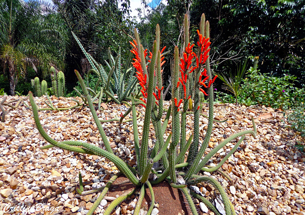 Caules delgados, cilíndricos, espinhosos, com 2,5 cm de largura, em suspensão ou rastejante, às vezes com raízes aéreas.