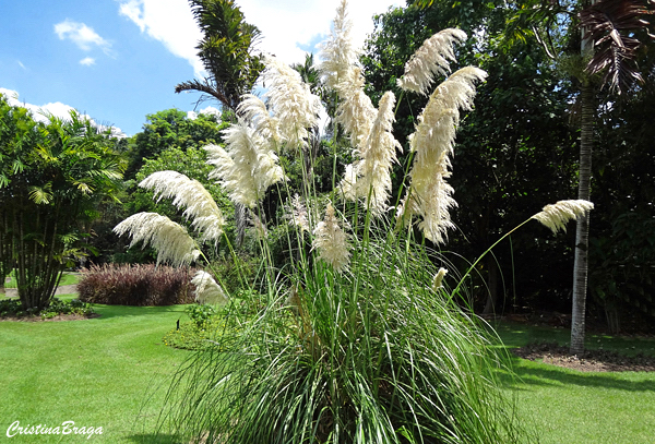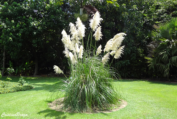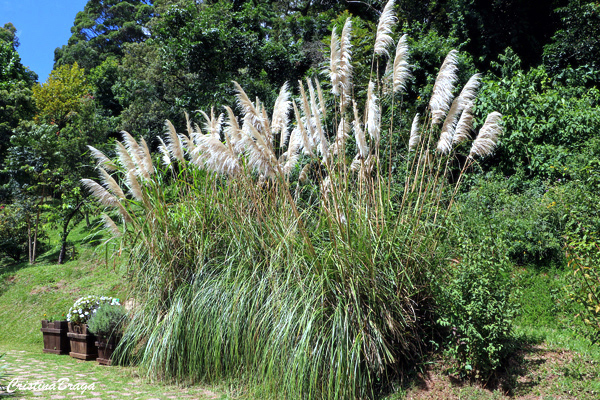 O Capim dos Pampas – Cortaderia selloana é uma herbácea rizomatosa, pertence à família Poaceae, nativa do sul do Brasil e Argentina, perene, ereta, entouceirada, de 1,5-3 metros de altura e com o mesmo em largura.