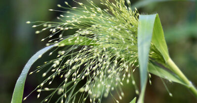 As panículas de flores, tornam-se gradualmente beges no meio do outono à medida que as sementes amadurecem.