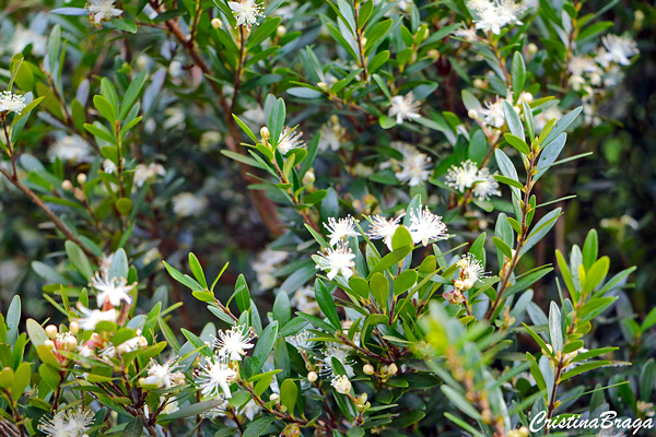 Flores solitárias, axilares, brancas, suavemente perfumadas. Surgem na primavera e atraem abelhas e pássaros.