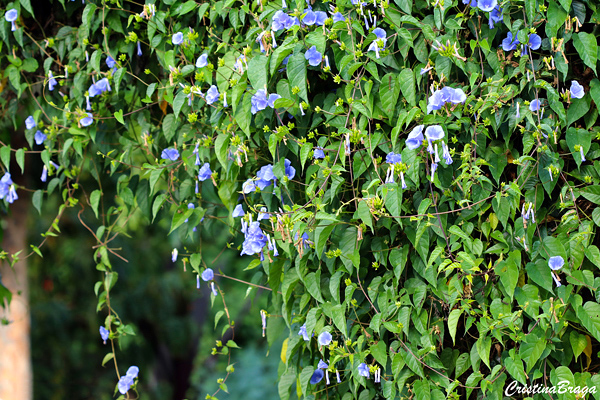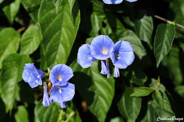 O Céu azul – Jacquemontia pentanthos é uma trepadeira volúvel, pertence à família Convolvulaceae, nativa da América Central e América do Norte, perene, semilenhosa, de crescimento é rápido, de até 2 metros de altura e muito ornamental.