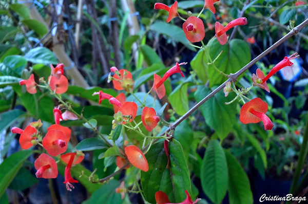 O Chapéu Chinês – Holmskioldia sanguinea é um arbusto escandente, pertence à família Verbenaceae, nativo do Himalaia, perene, semilenhoso, com 3-5 metros de altura e muito ornamental.