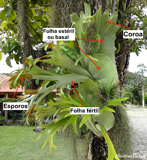 Em algumas espécies de Platycerium a margem superior forma uma coroa aberta. Esta fronde (folha) é responsável pelo desenvolvimento da planta, uma vez que retira água e nutrientes do ar e servem para reter a queda de detritos, como insetos mortos e pedaços de material vegetal; é neste ponto que a samambaia obtém seus minerais e outros nutrientes. Quando envelhece, uma nova fronde logo aparece para substituí-la.