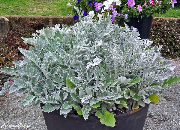 Cinerária Maritima é uma herbácea, pertence à família Asteraceae, nativa dos Estados Unidos, perene, de crescimento rápido, de 50-90 cm de altura e folhagem muito ornamental.