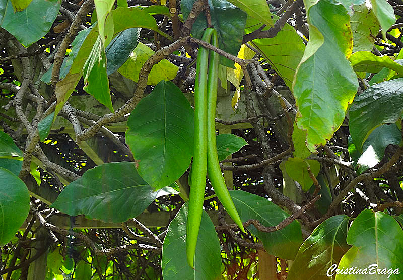 Fruto é parecido com uma vagem, que quando seco abre-se expondo as sementes envoltas em uma pluma.