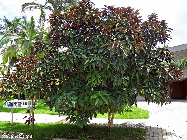Pode ser perenifólia a semi-decídua, dependendo das condições climáticas de onde é cultivada.