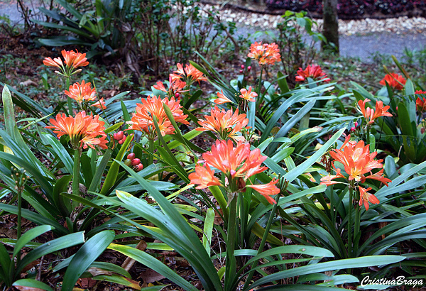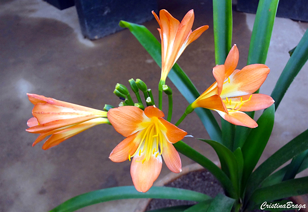A Clívia – Clivia miniata é uma herbácea, pertence à família Amaryllidaceae, nativa da África do Sul, perene, rizomatosa, de 30-45cm de altura, de folhagem e florescimento muito ornamentais.