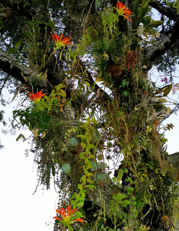 Não vive de seu hospedeiro como um parasita, mas sim, alimenta-se de folhas caídas e galhos que se acumulam nas fendas dos galhos das árvores.