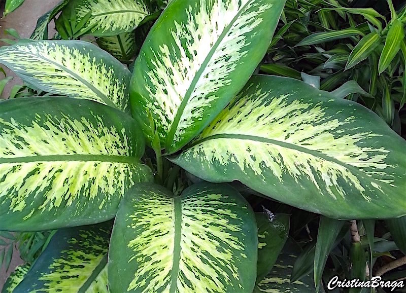 Comigo ninguém pode – Dieffenbachia amoena é uma herbácea, pertence à família Araceae, nativa da Colômbia e Costa Rica, perene, com caule espesso, suculento, de até 2 metros de altura e folhagem ornamental.