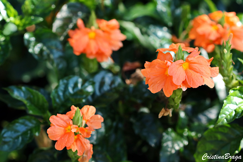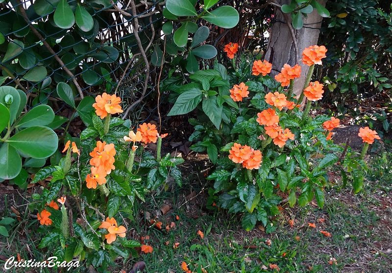 Crossandra – Crossandra infundibuliformis é um subarbusto, pertence à família Acanthaceae, nativo da Índia e Sri Lanka, perene, de crescimento moderado, ereto, ramificado, muito florífero, de 0,40-1,2 metros de altura e muito ornamental.