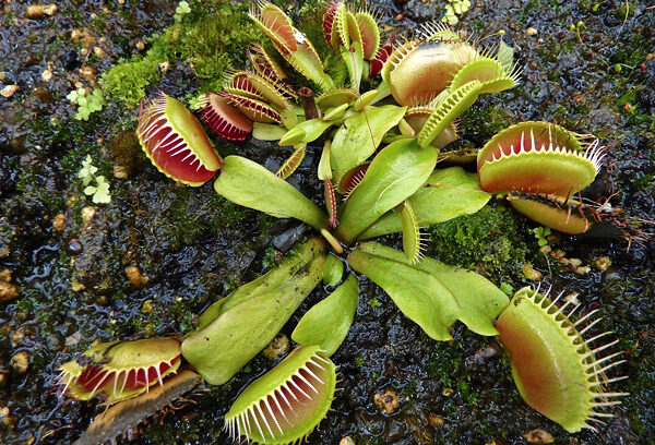 Para que a armadilha seja acionada, um mesmo “gatilho” deve ser estimulado duas vezes num curto período. Então os lóbulos se fecham sobre a presa em questão de décimos de segundo. Do modo como se fecham, os cílios se entrecruzam, formando uma espécie de jaula, da qual a presa não consegue escapar.