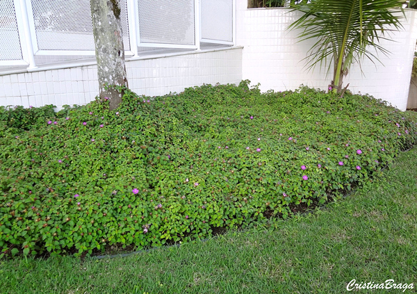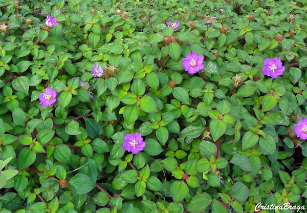 Flores solitárias, axilares, esparsas, com 5 pétalas de cor róseo-lilás, tendo ao centro os estames, salientes e bem visíveis. Surgem continuamente durante quase o ano todo, com maior intensidade na primavera e começo do verão.