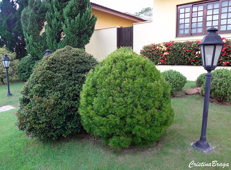 Para uma forma arredondada, manter o arbusto sempre podado.