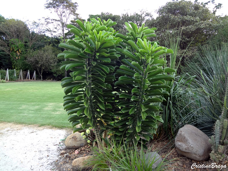 A Euphorbia neriifolia é um arbusto, pertence à família Euphorbiaceae, nativa da Índia Central, Orissa e Sul da Índia, perene, ereta, ramificada, espinhosa, suculenta, de crescimento moderado a rápido e de até 8 metros de altura.