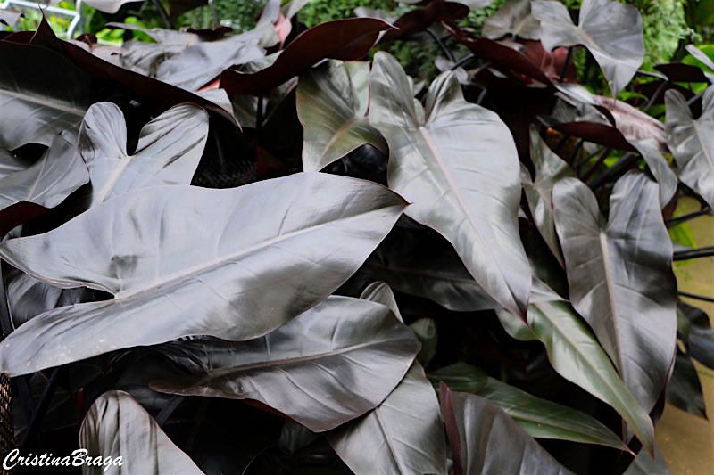 O Filodendro roxo tem como característica marcante exsudar em abundância seiva avermelhada quando cortada.