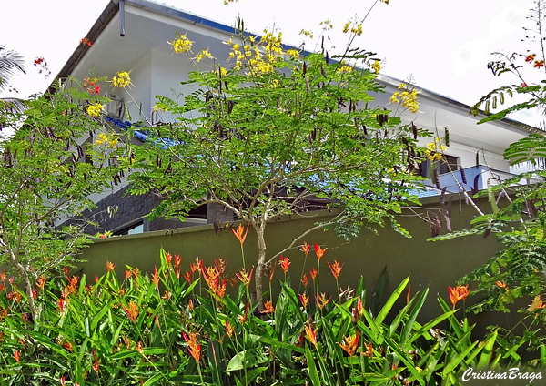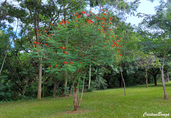 O Flamboyanzinho – Caesalpinia pulcherrima é um arbusto, pertence à família Leguminasae, nativo das Antilhas, perene, crescimento rápido, de 3-4 metros de altura, copa de 2,5 m.
