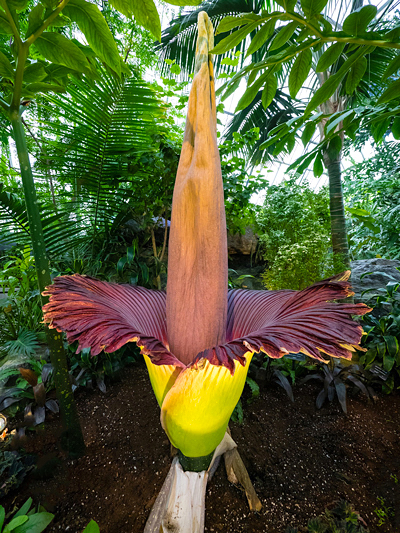 Flor cadáver – Amorphophallus titanum é uma herbácea, pertence à família Araceae, nativa de Sumatra, perene, de até 3 metros de altura.