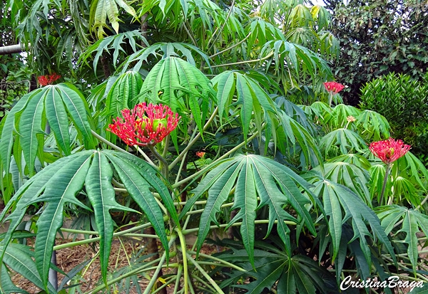 A Flor de coral – Jatropha multifida é um arbusto, pertence à família Euphorbiaceae, nativa da América Central, América do Norte e México, perene, suculenta, leitosa, ereta, de até 6 metros de altura, mas geralmente não ultrapassa os 3 metros.