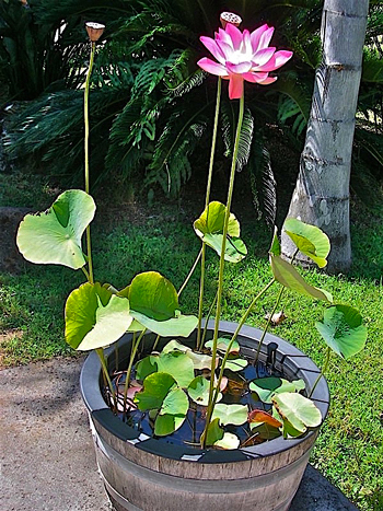 Inicialmente, o vaso deve ser colocado sobre uma pilha de tijolos de modo que, as folhas flutuem na superfície da água. À medida que a planta amadurece, retire uma camada de tijolo de cada vez, levando a planta para o fundo do tanque até que a profundidade desejada seja atingida.