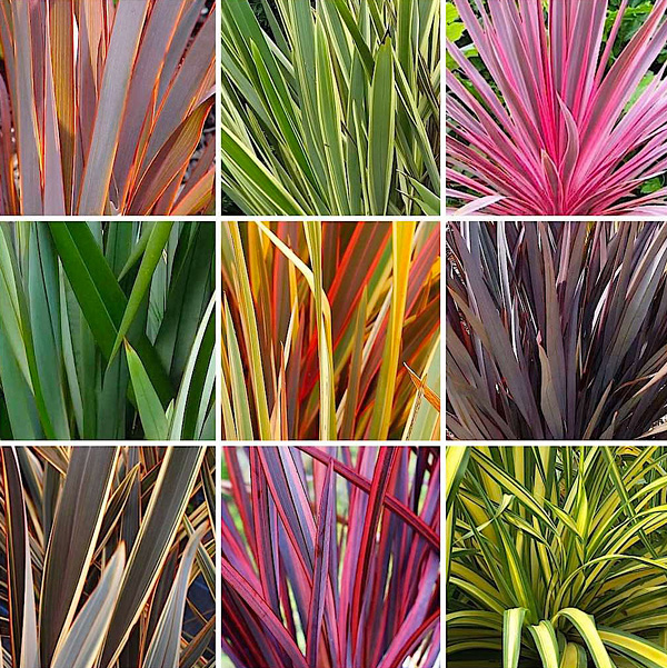 O gênero tem apenas duas espécies, sendo que ambas são bastante grande: Phormium Tenax e Phormium cookianum e no cruzamento entre as duas espécies surgiram híbridos com vários tamanhos, diversas cores, com ou sem listras como: amarelo, roxo, rosa, laranja, vermelho e bronze.