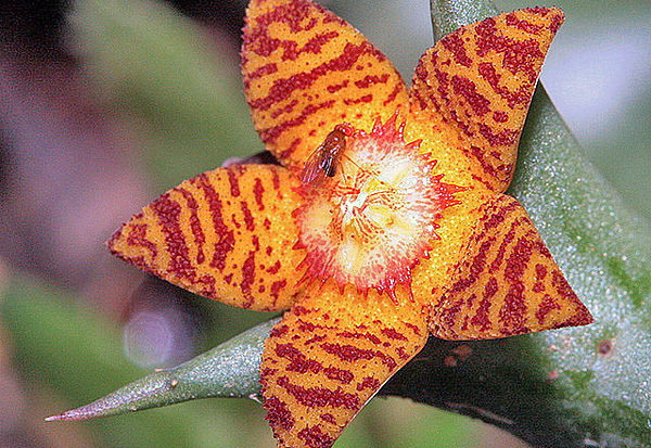 Sua polinização é realizada por moscas que são atraídas pelo cheiro semelhante ao da carniça.