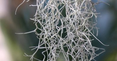 Tillandsia usneoides é uma das mais surpreendentes plantas entre todas as bromélias, é conhecida popularmente como barba de velho. Com caules e folhas verde acinzentadas, tão finas que parecem cabelos. São recobertas de pequenas escamas que retém a umidade. Produzem também flores em miniatura, com três pétalas, de cor branco esverdeado.