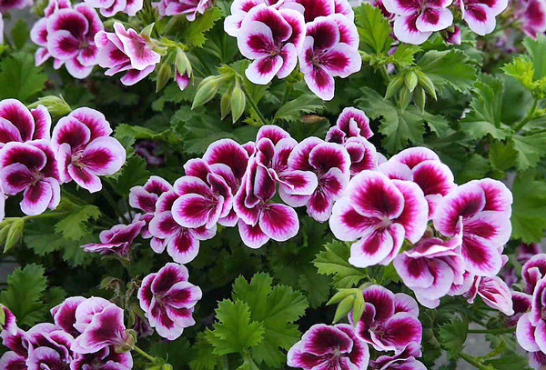 Gerânio – Pelargonium x domesticum é um subarbusto, pertence à família Geraniaceae, perene, com ramagem ereta de 30-60 cm de altura e 40-50 cm de largura.